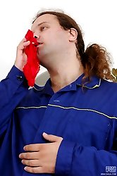 Well-hung worker strokes off making his tool ready for harsh anal onslaught